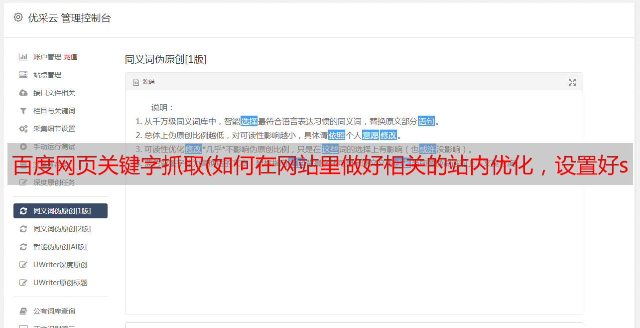 优采云 发布时间: 2022-04-08 19:20百度网页关键字抓取(如何在网站里做好相关的站内优化,设置好seo关键词)