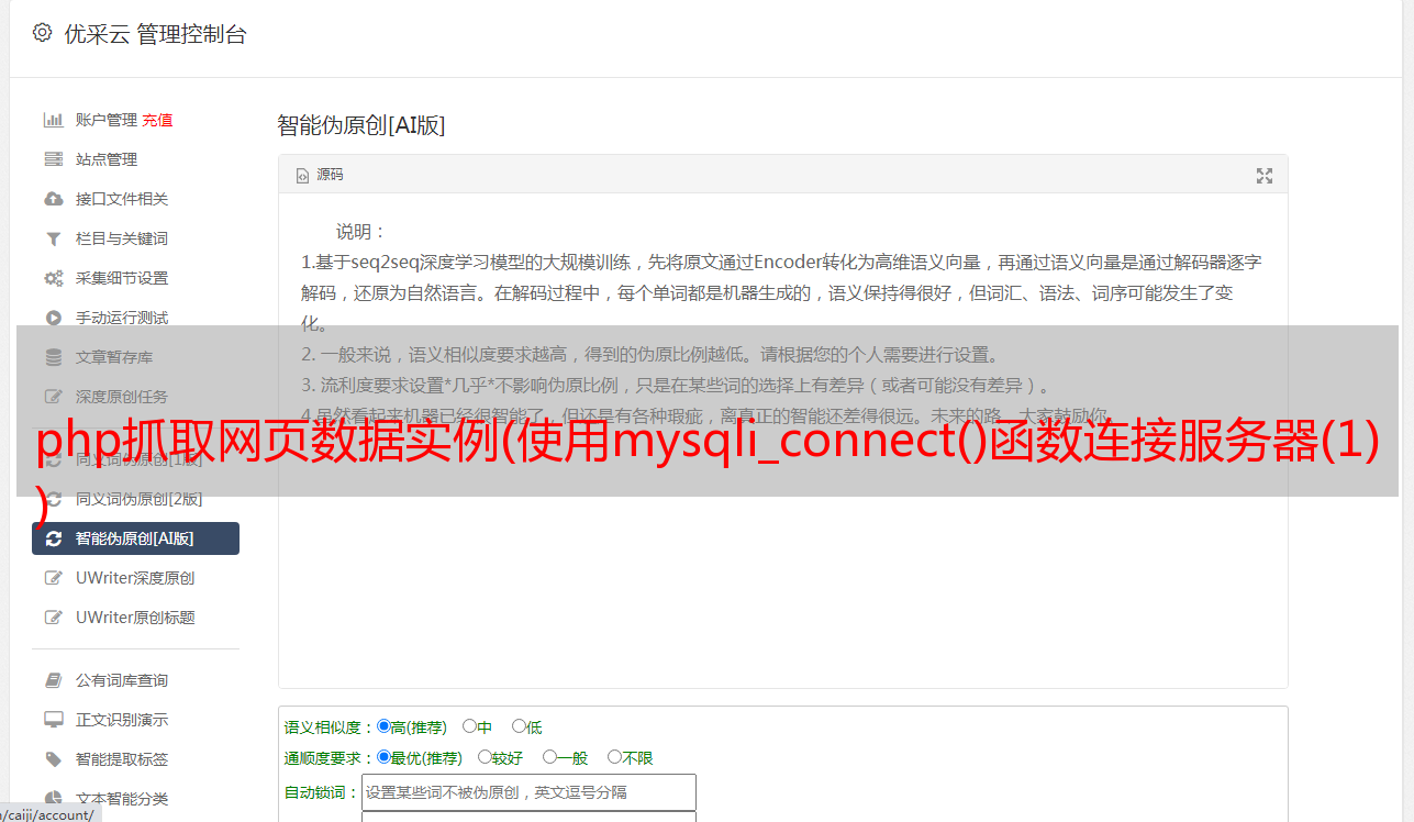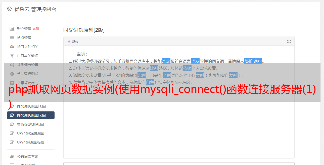优采云 发布时间: 2022-04-09 00:05php抓取网页数据实例(使用mysqli_connect()函数连接服务器(1)