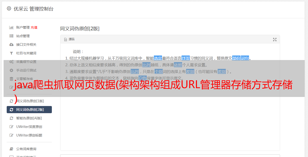 优采云 发布时间: 2022-04-09 01:35java爬虫抓取网页数据(架构架构组成URL管理器存储方式存储
