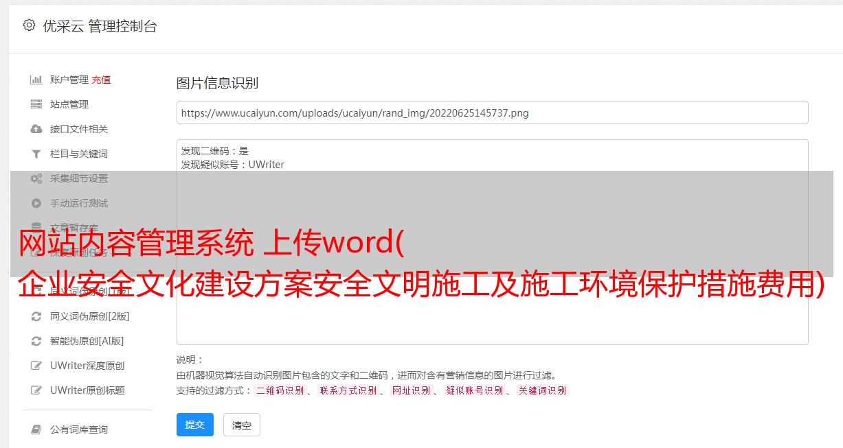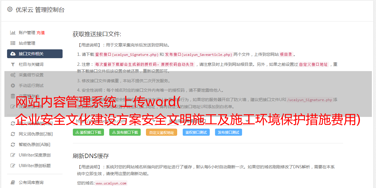 网站内容管理系统 上传word( 企业安全文化建设方案安全文明施工及施工环境保护措施费用)