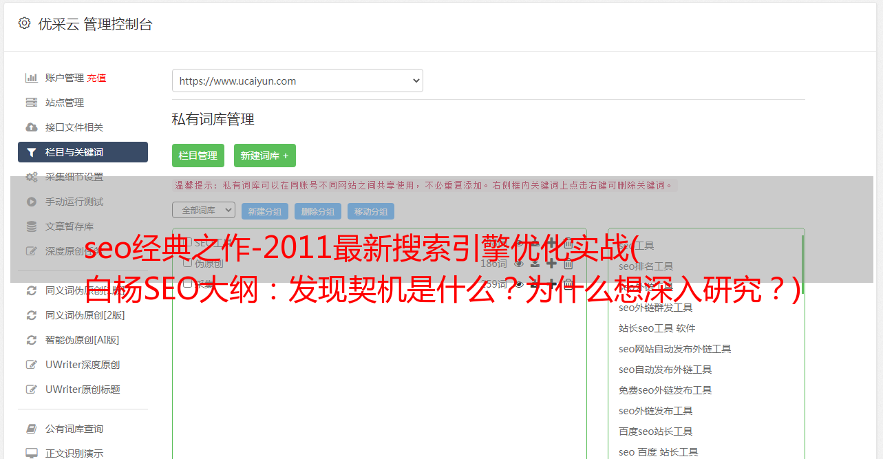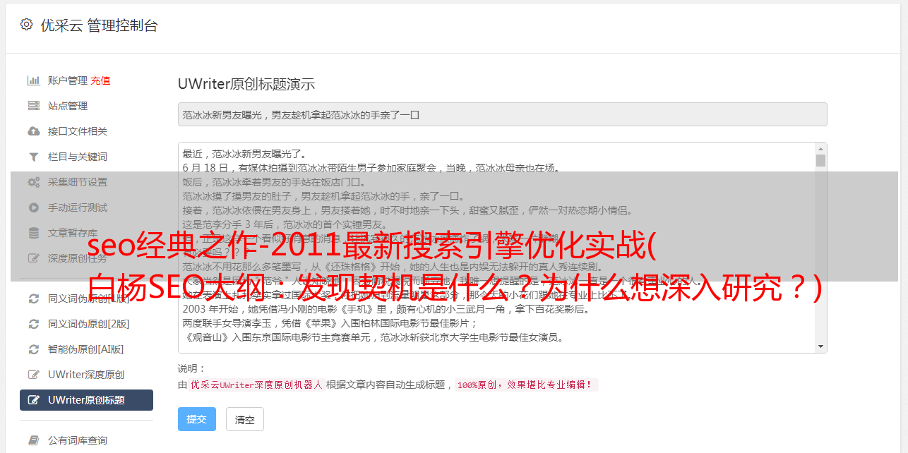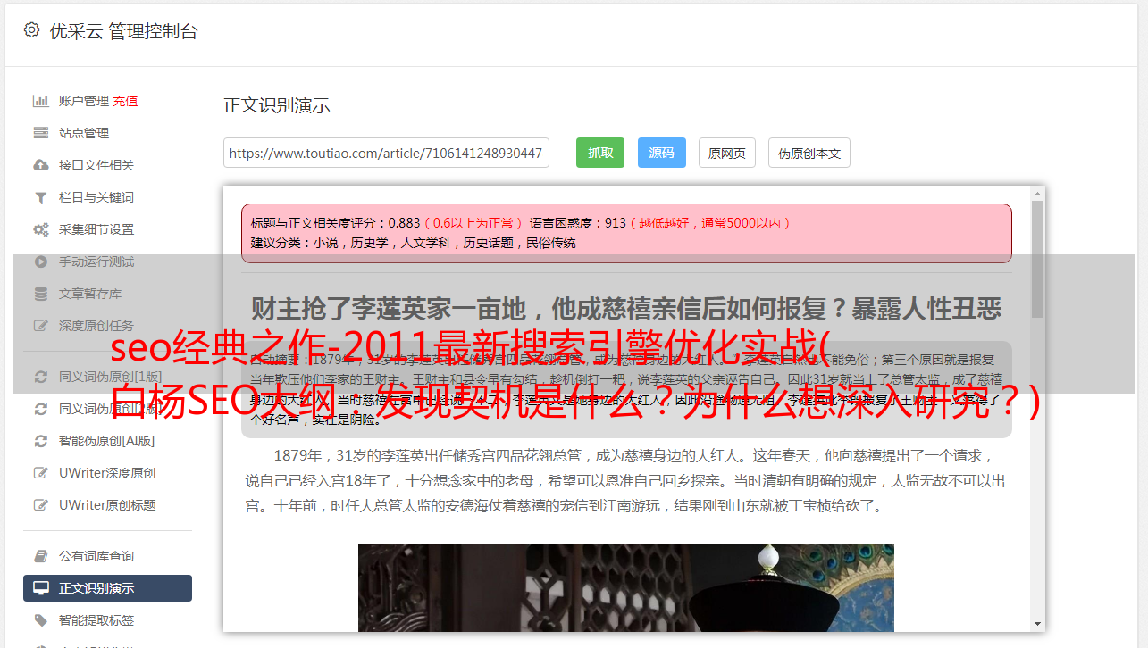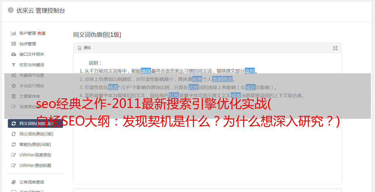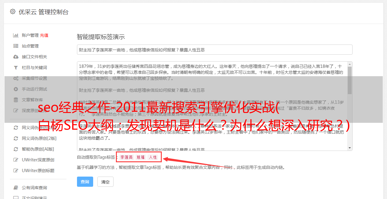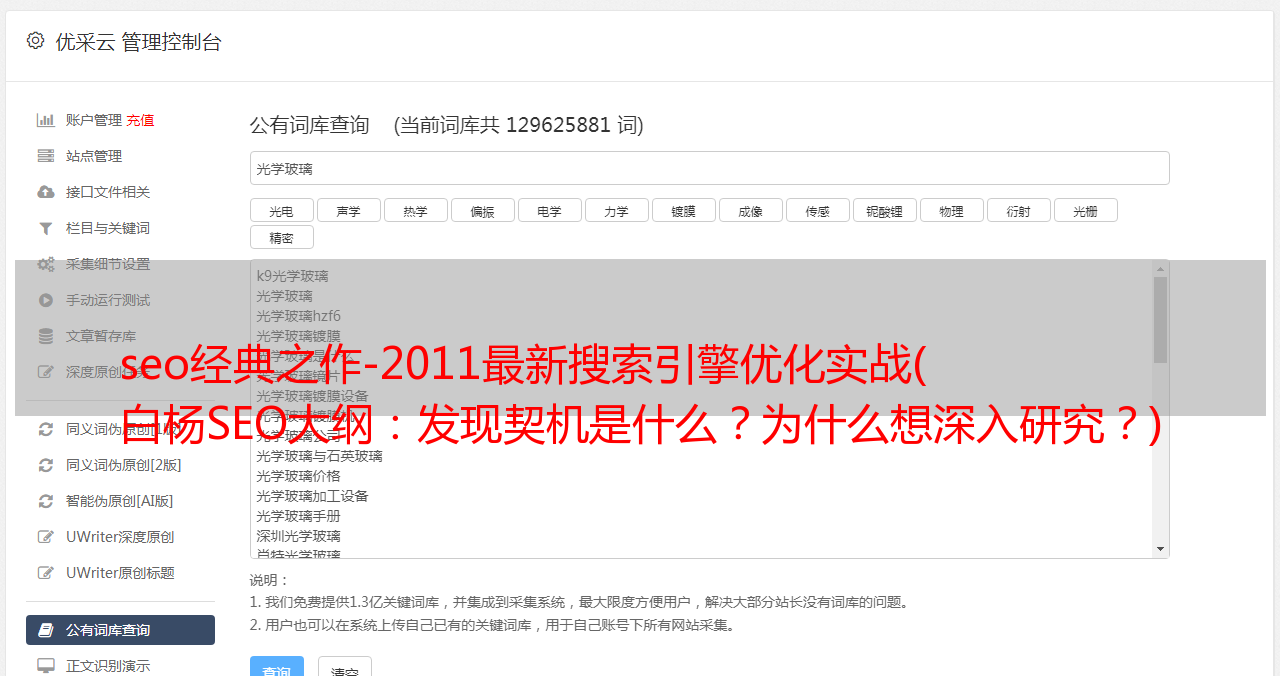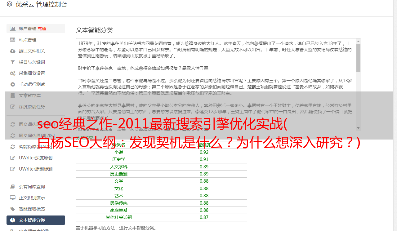优采云 发布时间: 2022-04-09 16:29seo经典之作-2011最新搜索引擎优化实战(