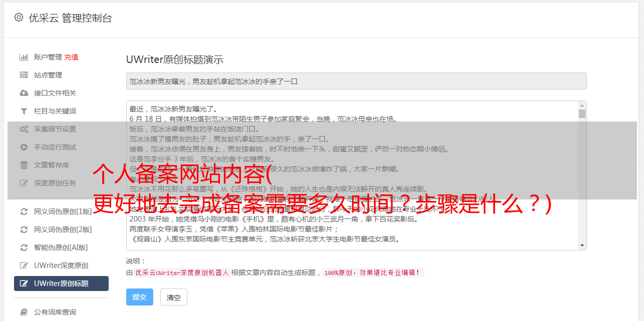 优采云 发布时间: 2022-04-09 17:28个人备案网站内容(
