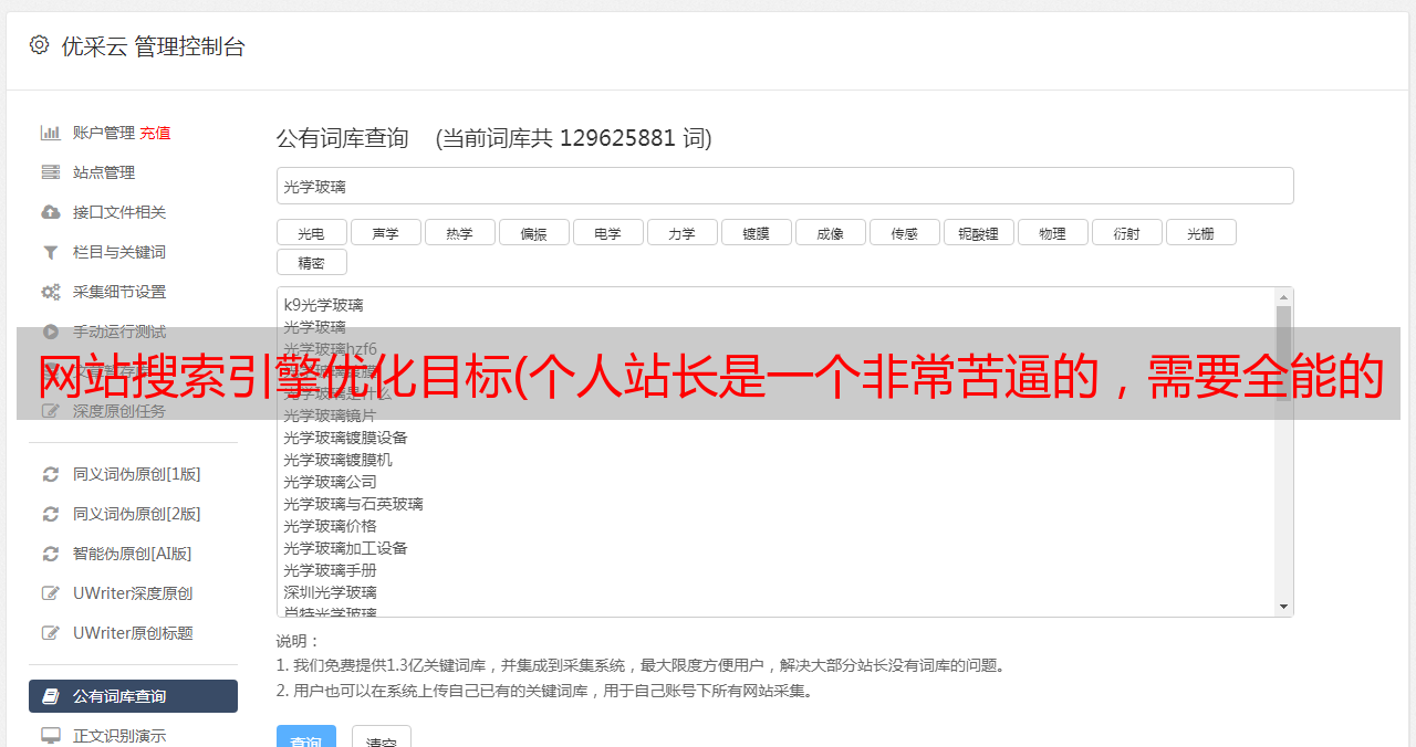 优采云 发布时间: 2022-04-09 22:34网站搜索引擎优化目标(个人站长是一个非常苦逼的,需要全能的从前端技术)