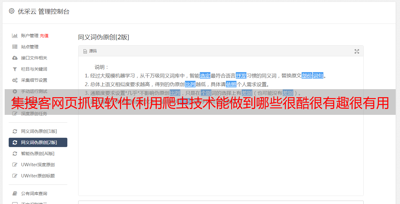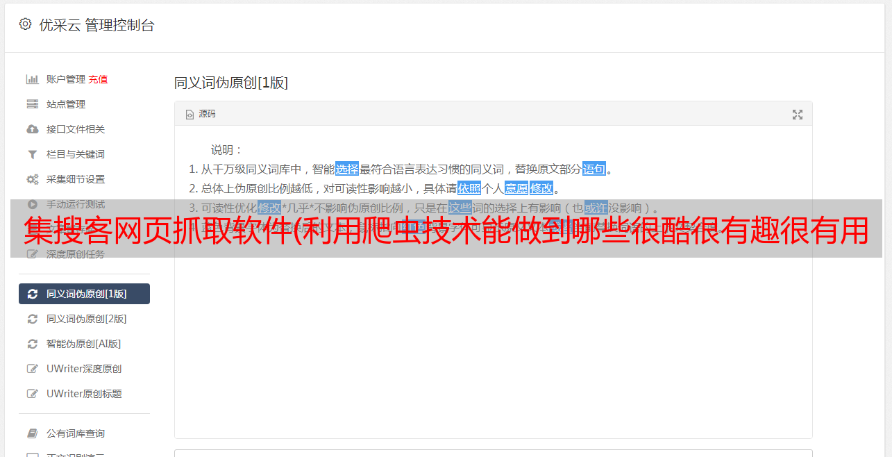 一种新颖的云在线智能爬虫/采集器,基于优采云分布式云爬虫框架,帮助用户快速获取大量规范化网页数据。