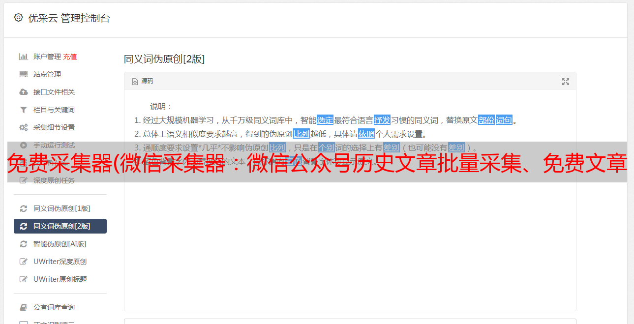 免费文章采集器,深耕采集领域,借助AI领先的智能写作算法,SEO通用智能伪原创采集器。基于高度智能的文本识别算法,按下关键词采集文章,无需编写采集规则。自动全网采集,覆盖六大搜索引擎。自动过滤内容相关度和文章平滑度,只有采集高度相关和平滑度文章。地图自动分配,智能伪原创,定时采集,自动发布,自动提交给搜索引擎,支持各种内容管理系统和建站程序。通过免费的文章采集器、采集上百篇文章文章 全网可即时提供参考写作。当然,这几百个文章也可以拼凑出知识点,进行伪原创也是可以的,效果很好,不用写规则,直接输入关键词@ > 到 采集100 篇文章文章。通过免费的文章采集器,编辑器可以同时批量处理不同cms类型的网站,自动更新网站的内容,自动优化做SEO,做网站@采集Station收录效果还是很不错的!只需输入 关键词 到 采集100 篇文章文章。通过免费的文章采集器,编辑器可以同时批量处理不同cms类型的网站,自动更新网站的内容,自动优化做SEO,做网站@采集Station收录效果还是很不错的!只需输入 关键词 到 采集100 篇文章文章。通过免费的文章采集器,编辑器可以同时批量处理不同cms类型的网站,自动更新网站的内容,自动优化做SEO,做网站@采集Station收录效果还是很不错的!