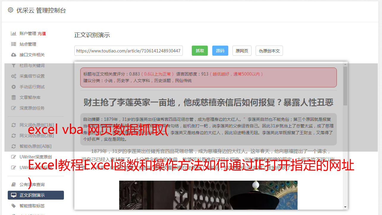 优采云 发布时间: 2022-04-10 08:33excel vba 网页数据抓取(