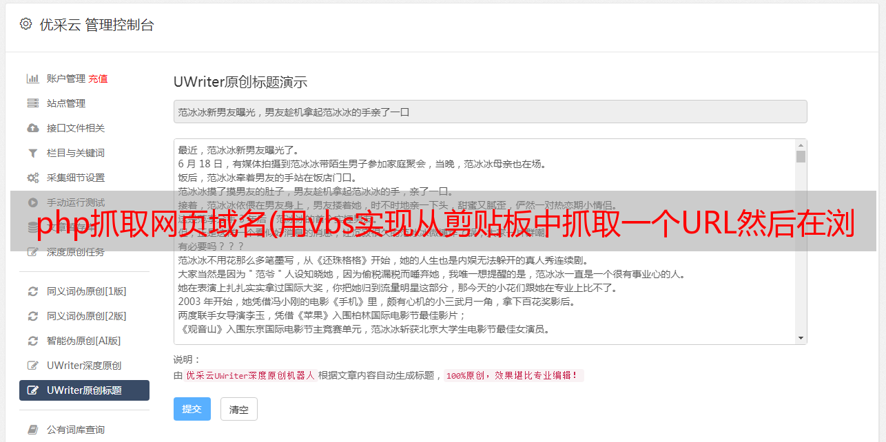 优采云 发布时间: 2022-04-10 11:33php抓取网页域名(用vbs实现从剪贴板中抓取一个URL然后在浏览器中打开)