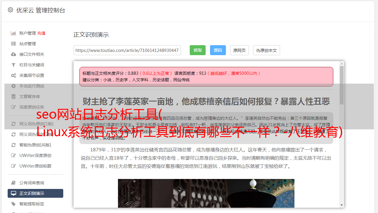 优采云 发布时间: 2022-04-11 12:20seo网站日志分析工具(