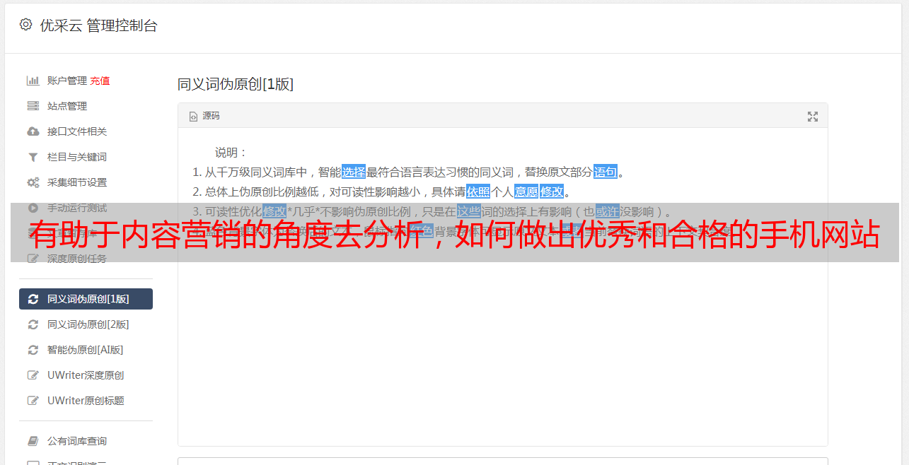 优采云 发布时间: 2021-05-16 03:01有助于内容营销的角度去分析,如何做出优秀和合格的手机网站