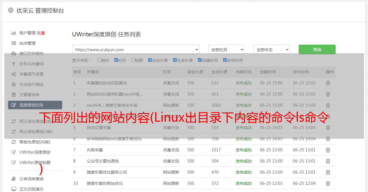 优采云 发布时间: 2022-04-11 18:37下面列出的网站内容(Linux出目录下内容的命令ls命令