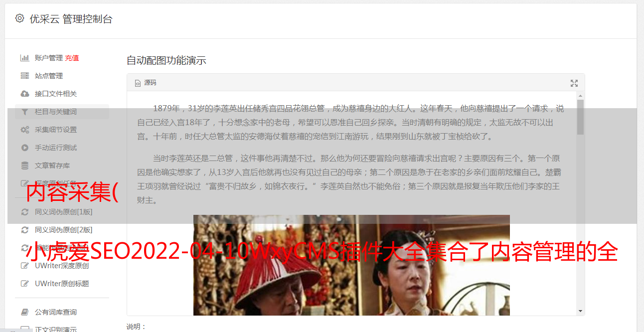 内容采集( 小虎爱SEO2022-04-10WxyCMS插件大全集合了内容管理的全套流程)