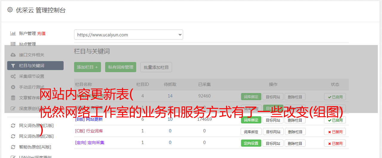 优采云 发布时间: 2022-04-12 00:24网站内容更新表(