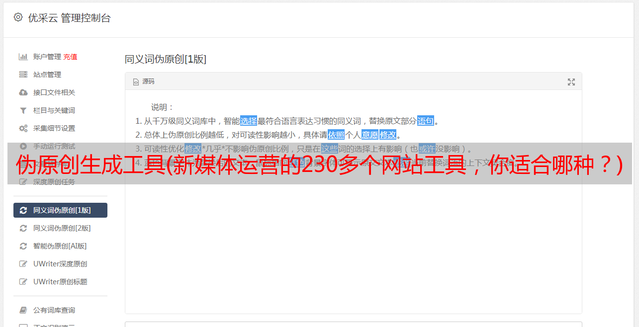 优采云 发布时间: 2022-04-12 02:14伪原创生成工具(新媒体运营的230多个网站工具,你适合哪种?)