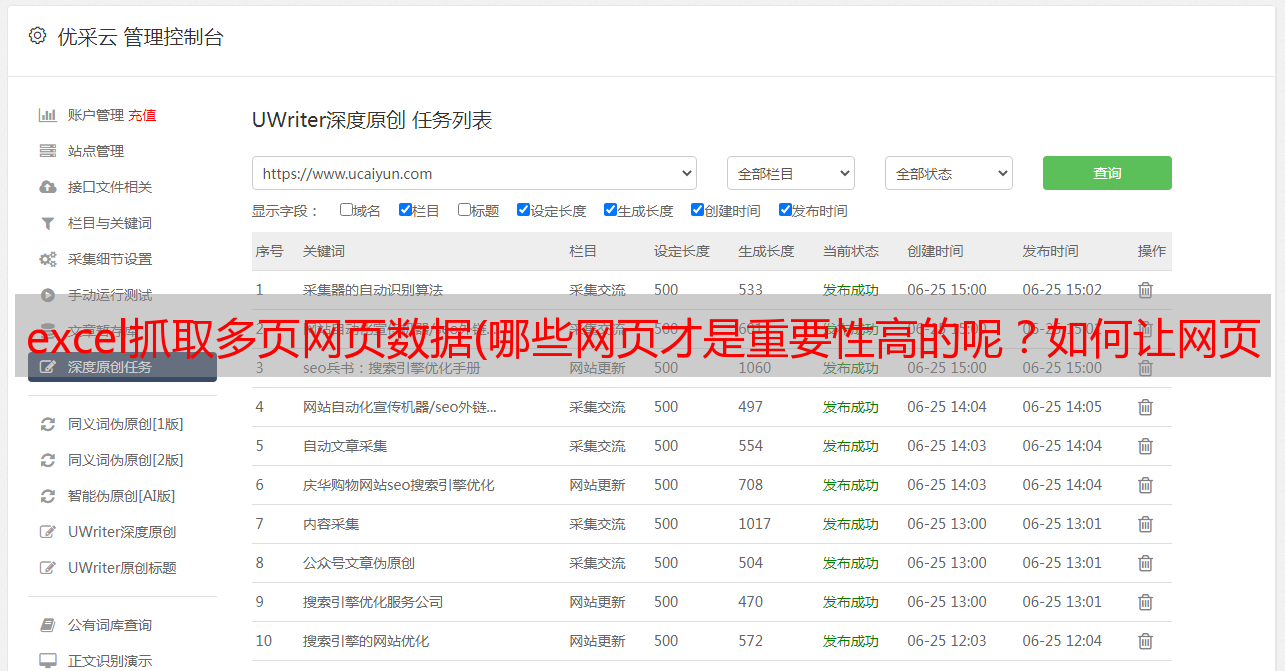 优采云 发布时间: 2022-04-12 04:37excel抓取多页网页数据(哪些网页才是重要性高的呢?如何让网页数据进行高效安全地传送