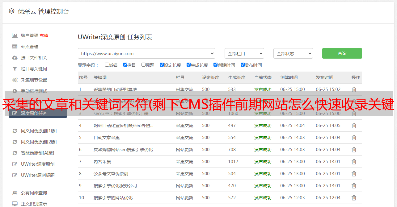 优采云 发布时间: 2022-04-12 05:26采集的文章和关键词不符(剩下CMS插件前期网站怎么快速收录关键词排名?排名