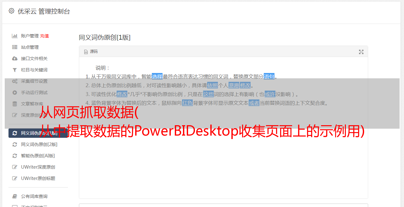 从网页抓取数据( 从中提取数据的PowerBIDesktop收集页面上的示例用)
