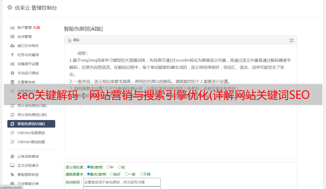 优采云 发布时间: 2022-04-12 09:22seo关键解码:网站营销与搜索引擎优化(详解网站关键词SEO优化与网站整站优化有什么不一样)