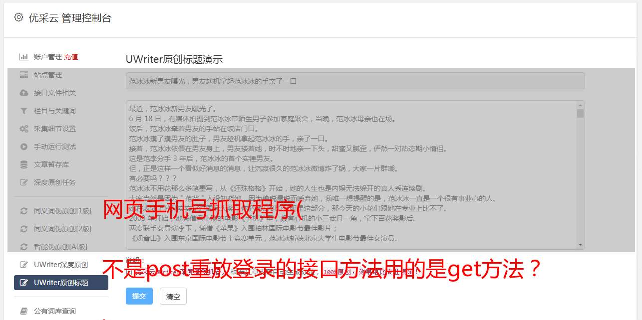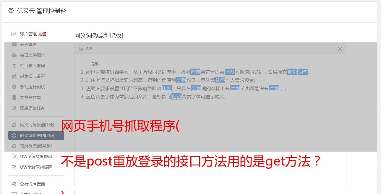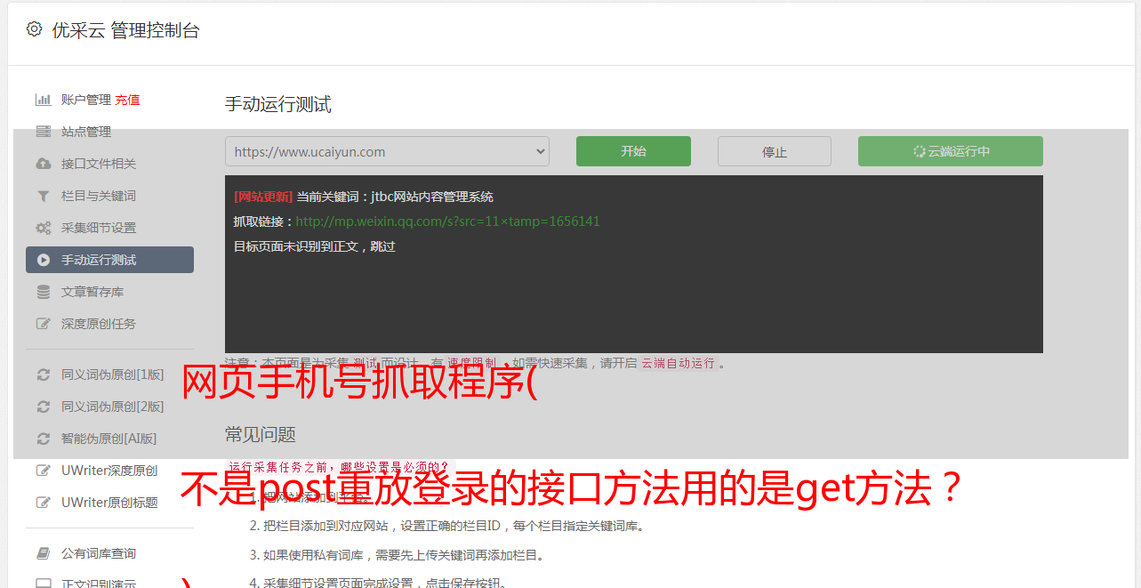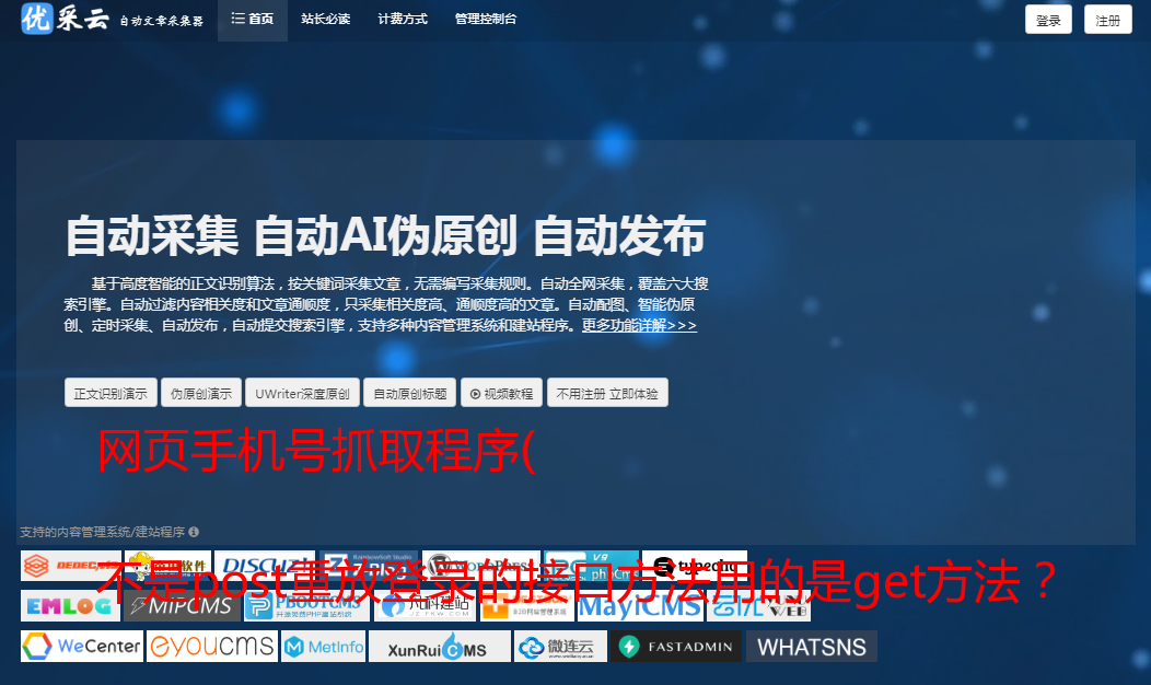 网页手机号抓取程序( 不是post重放登录的接口方法用的是get方法? )