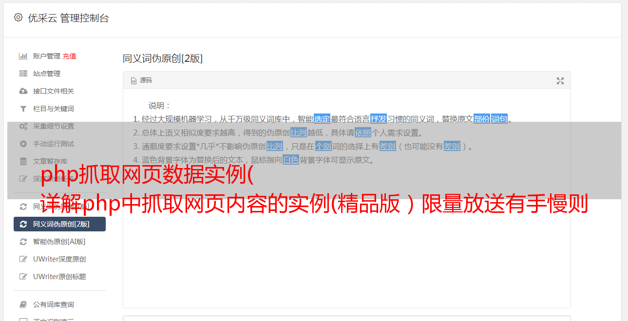 优采云 发布时间: 2022-04-12 11:18php抓取网页数据实例(