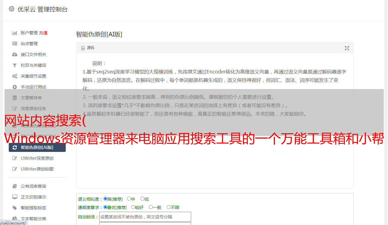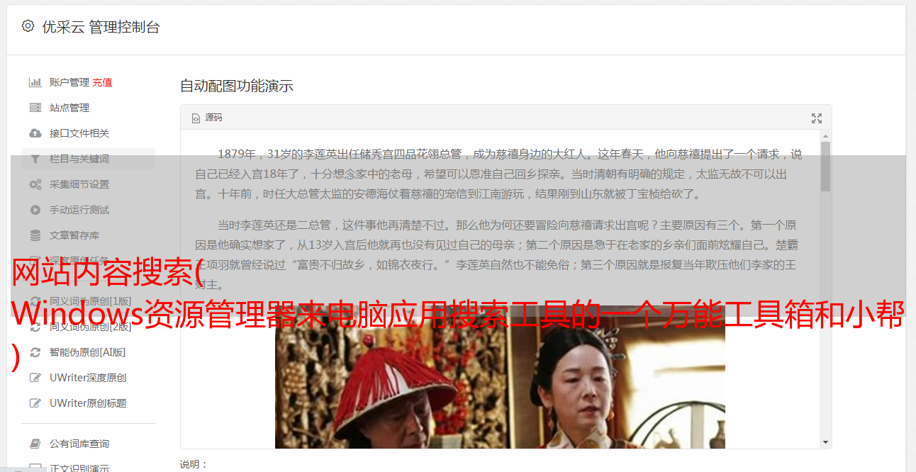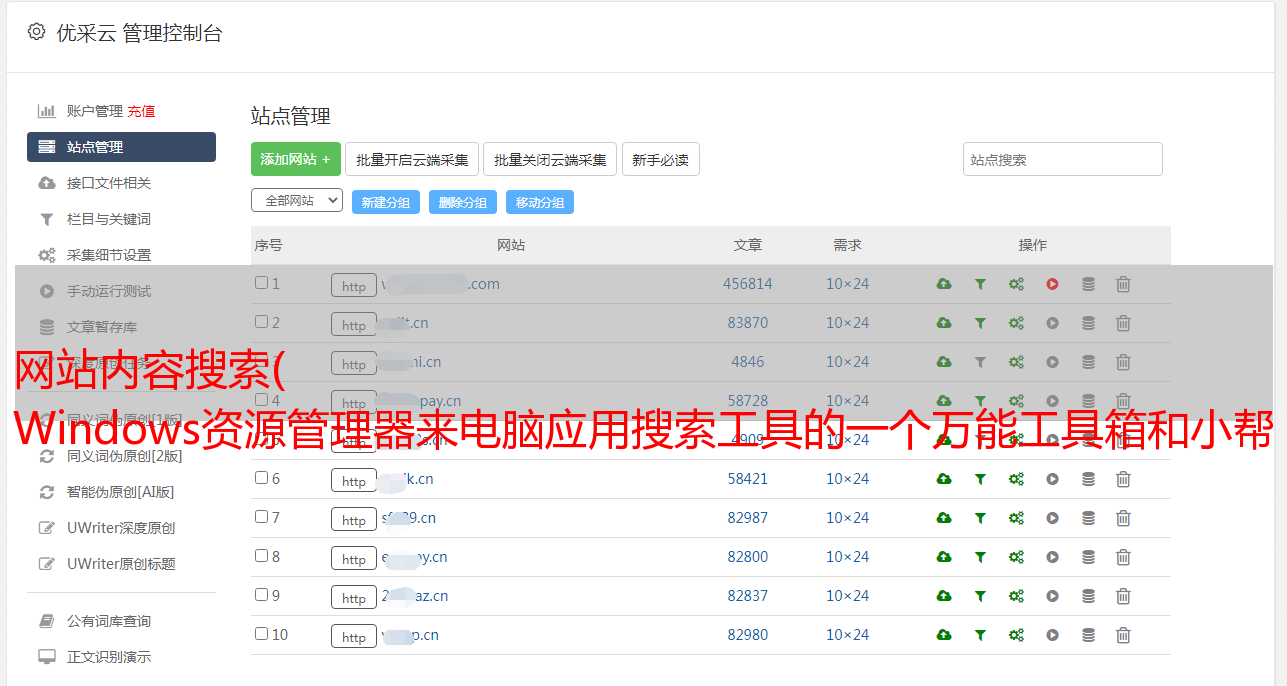 优采云 发布时间: 2022-04-12 16:32网站内容搜索(