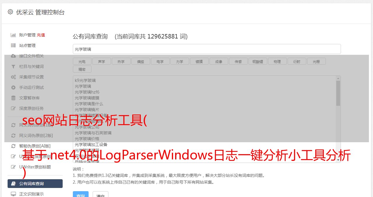 优采云 发布时间: 2022-04-12 17:31seo网站日志分析工具(