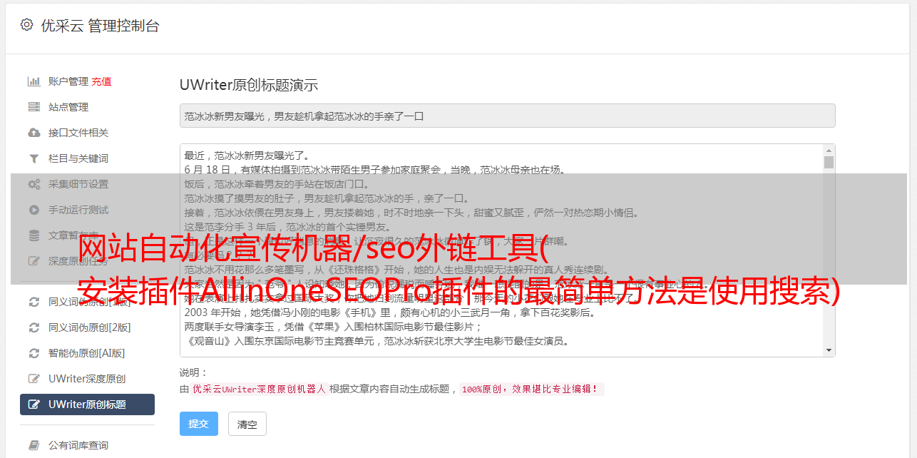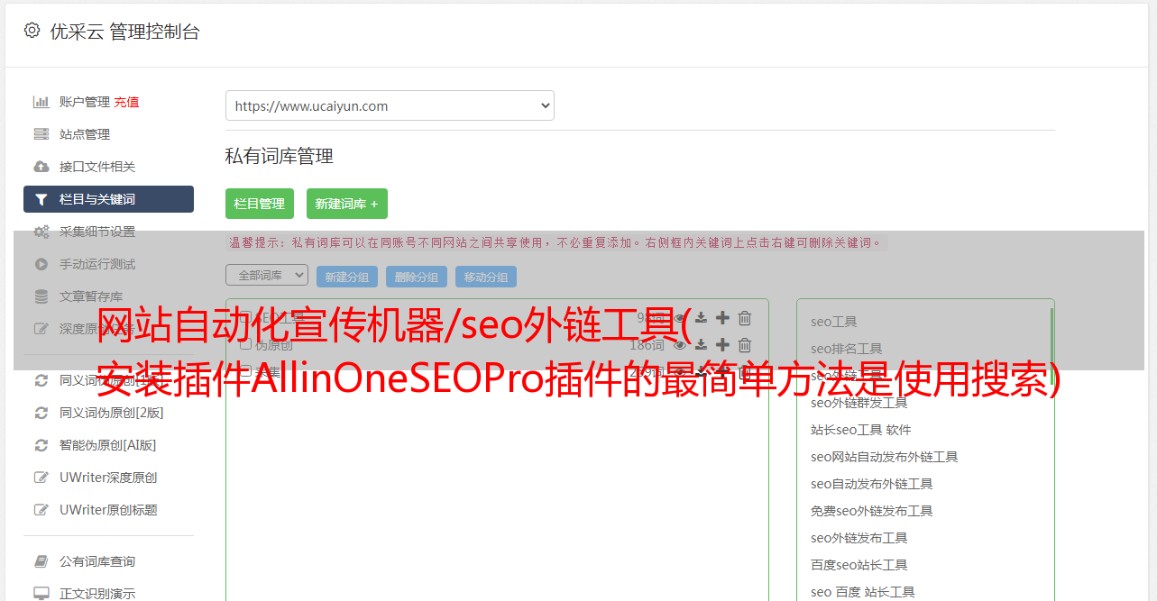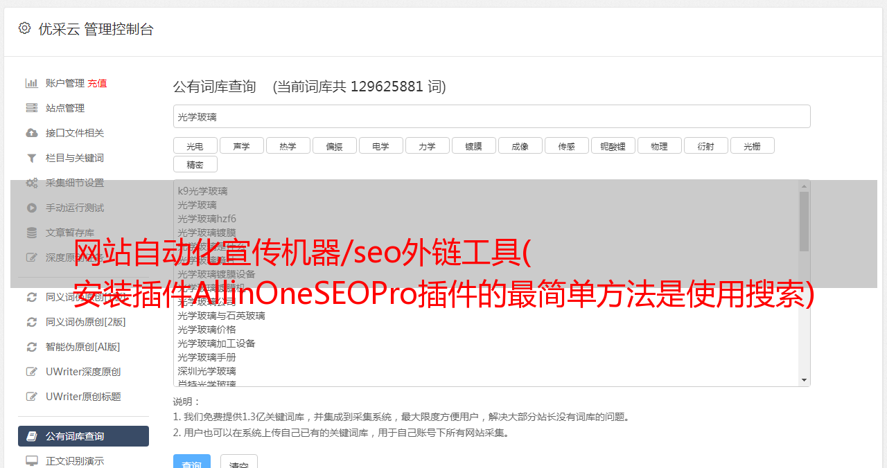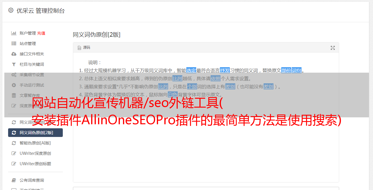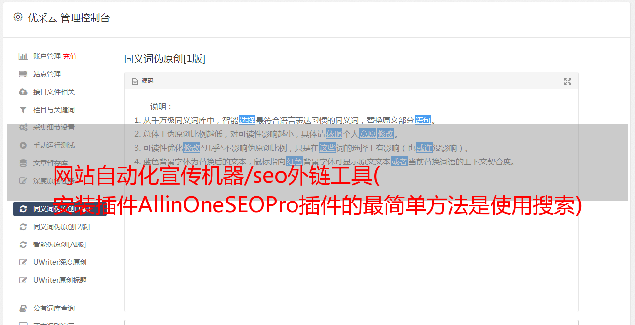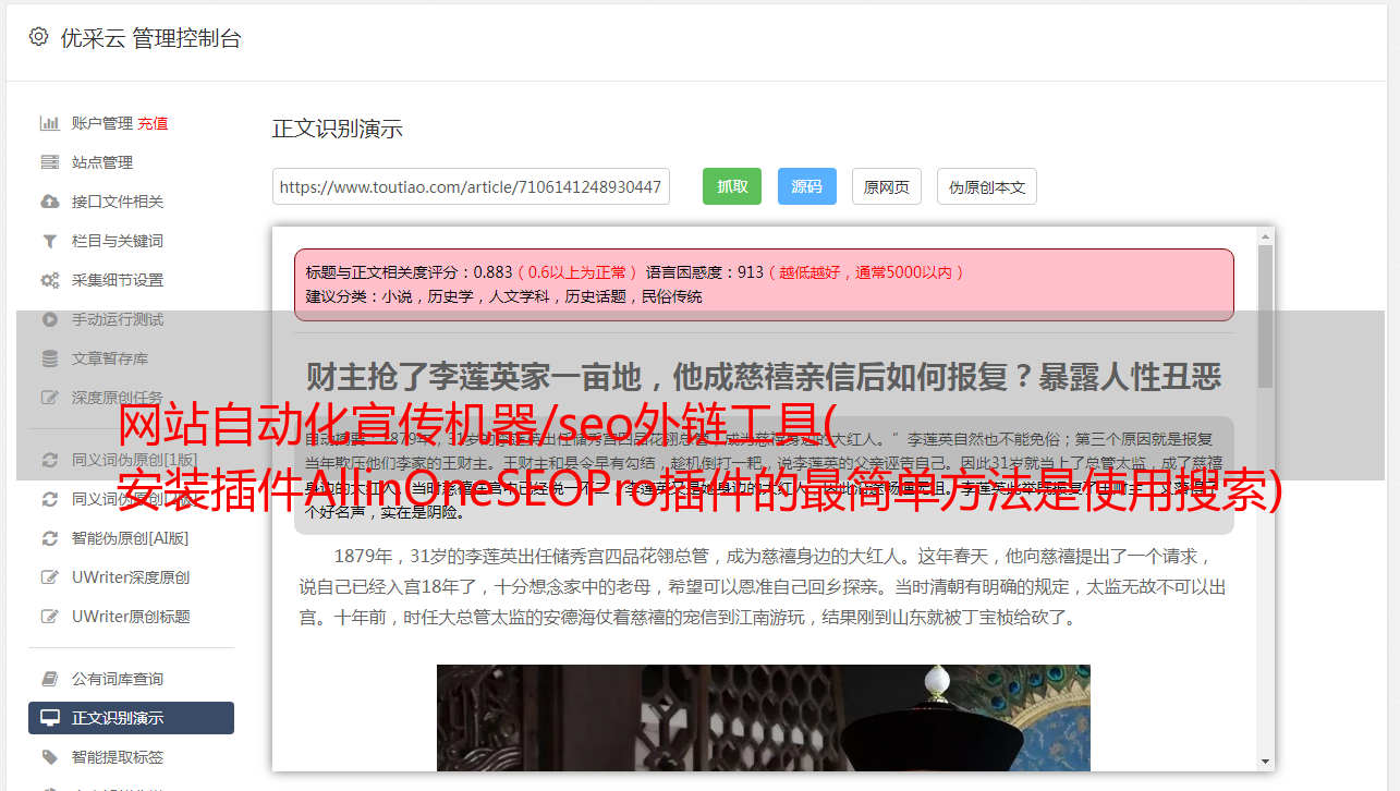 网站自动化宣传机器/seo外链工具( 安装插件AllinOneSEOPro插件的最简单方法是使用搜索)