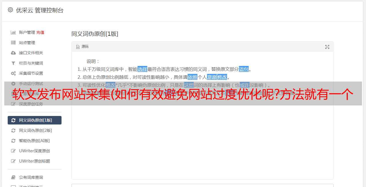 优采云 发布时间: 2022-04-12 23:18软文发布网站采集(如何有效避免网站过度优化呢?方法就有一个外链)