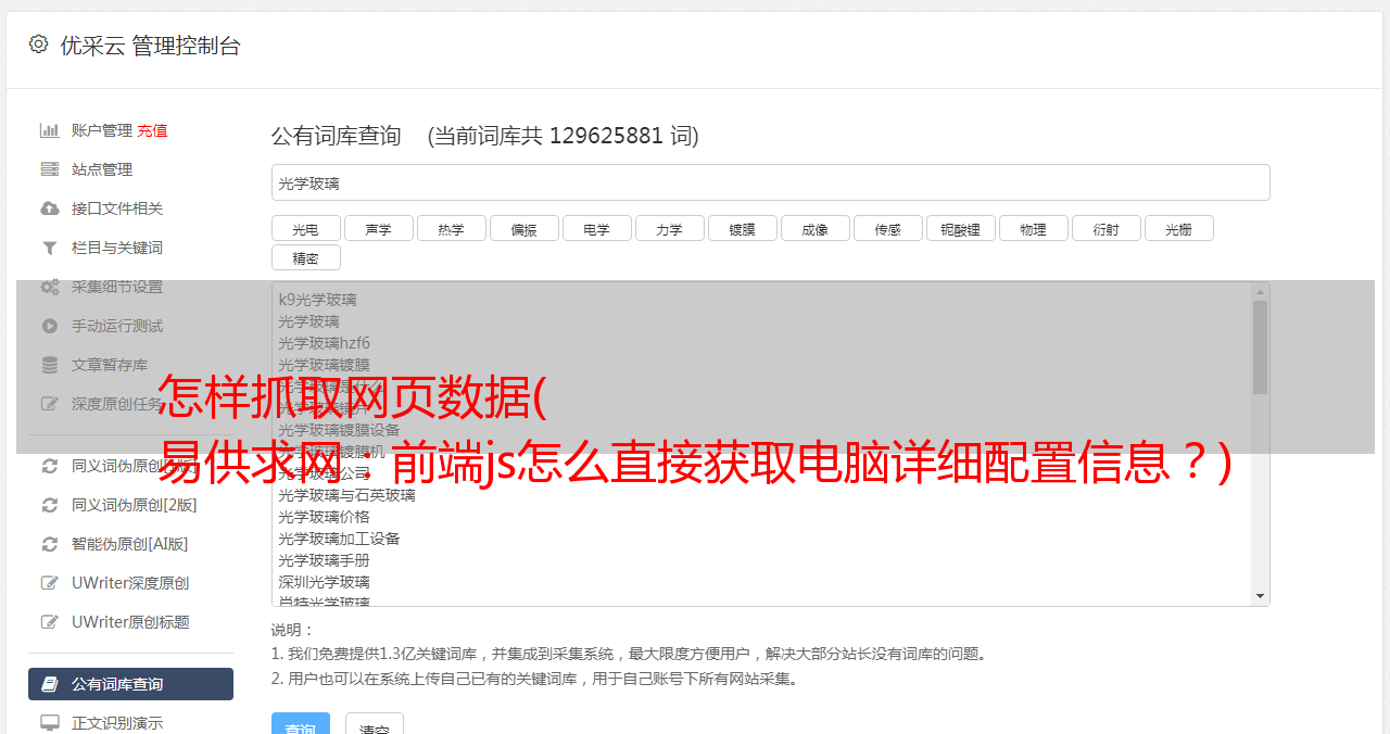 怎样抓取网页数据( 易供求网:前端js怎么直接获取电脑详细配置信息?)