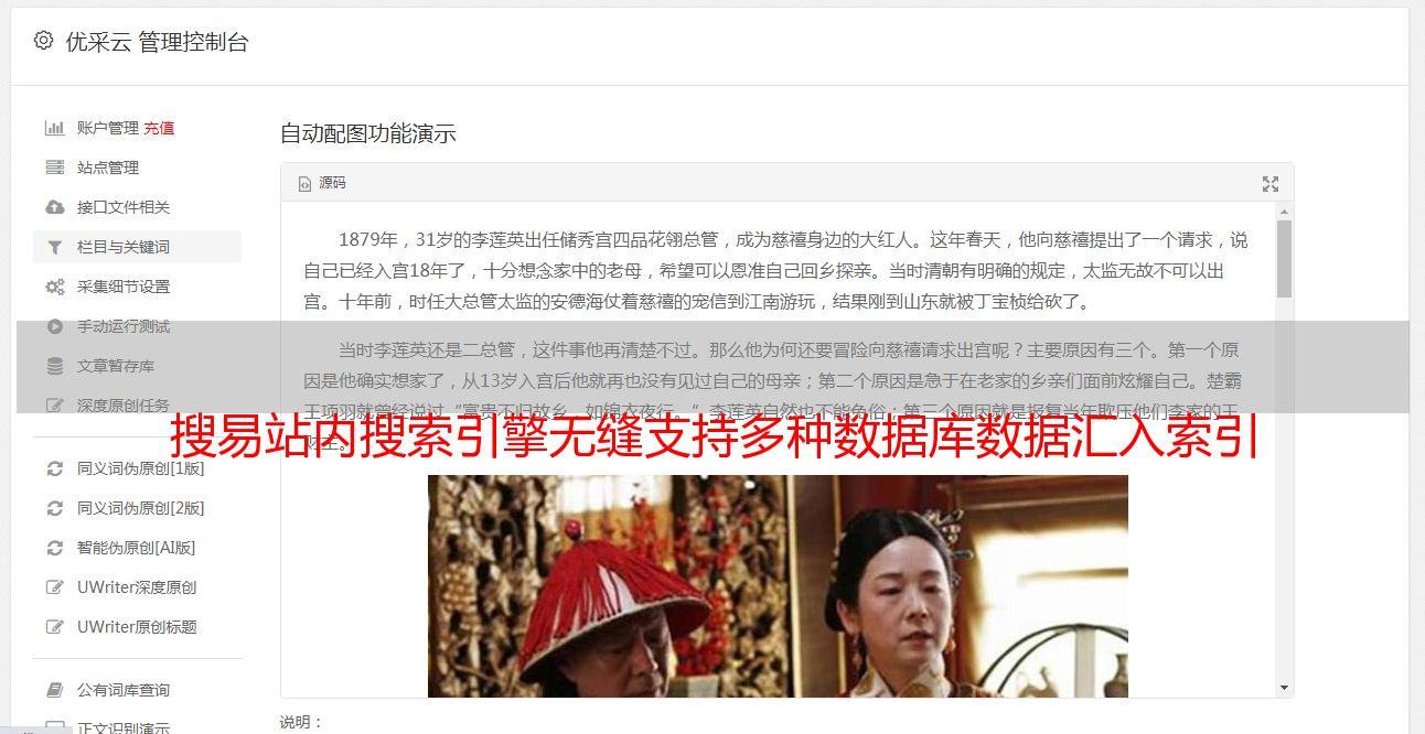 搜易站内搜索引擎无缝支持多种数据库数据汇入索引