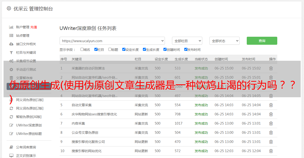 优采云 发布时间: 2022-04-13 06:01伪原创生成(使用伪原创文章*敏*感*词*是一种饮鸩止渴的行为吗??