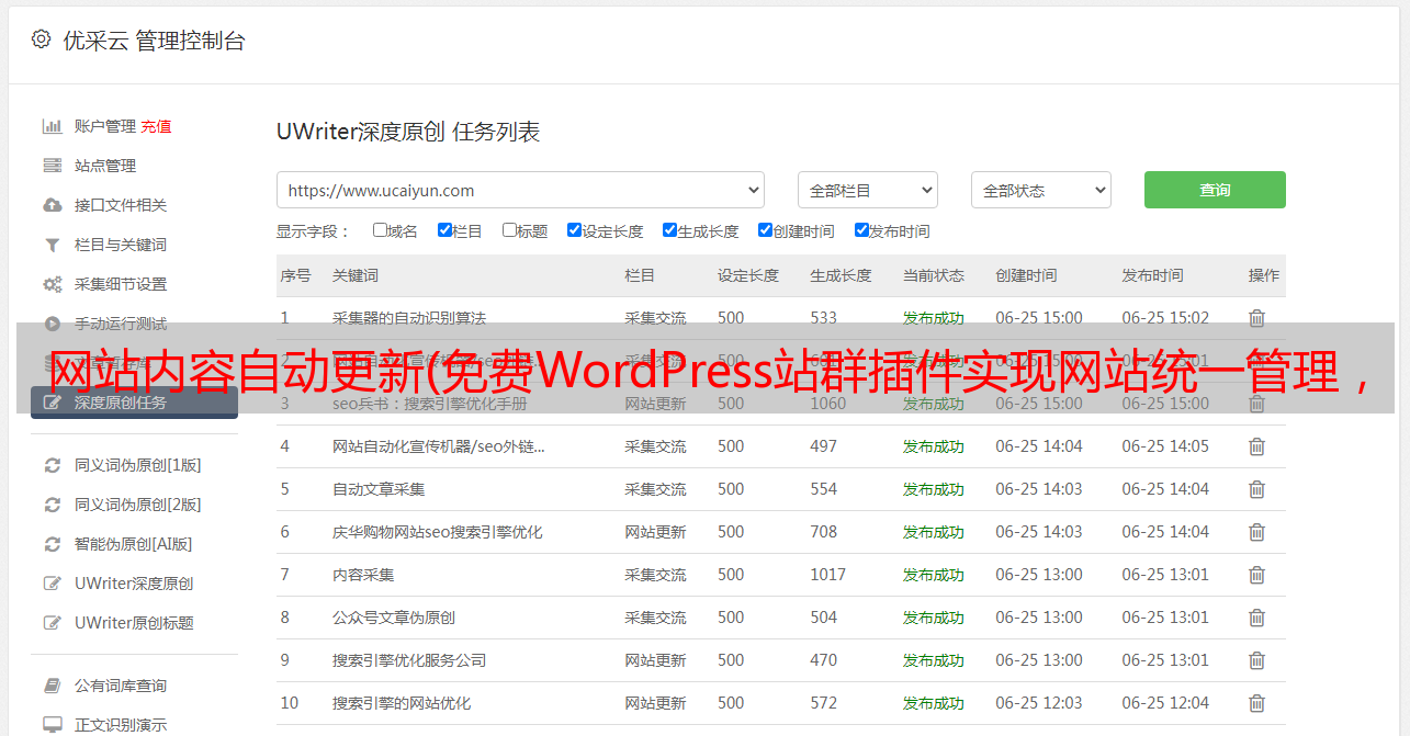 优采云 发布时间: 2022-04-13 07:11网站内容自动更新(免费WordPress站群插件实现网站统一管理,文章统一更新
