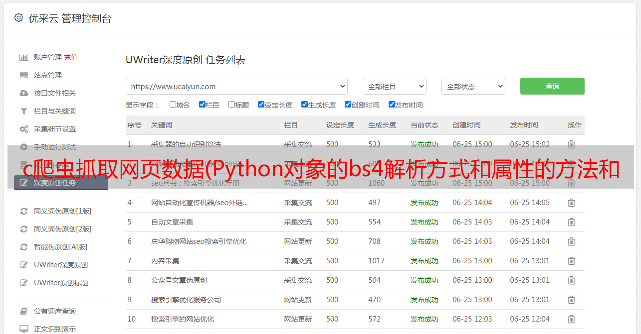 优采云 发布时间: 2022-04-13 09:39c爬虫抓取网页数据(Python对象的bs4解析方式和属性的方法和方法)
