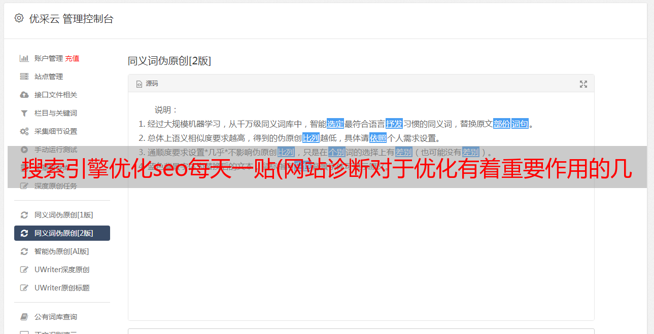 优采云 发布时间: 2022-04-13 18:11搜索引擎优化seo每天一贴(网站诊断对于优化有着重要作用的几个方面建议!)