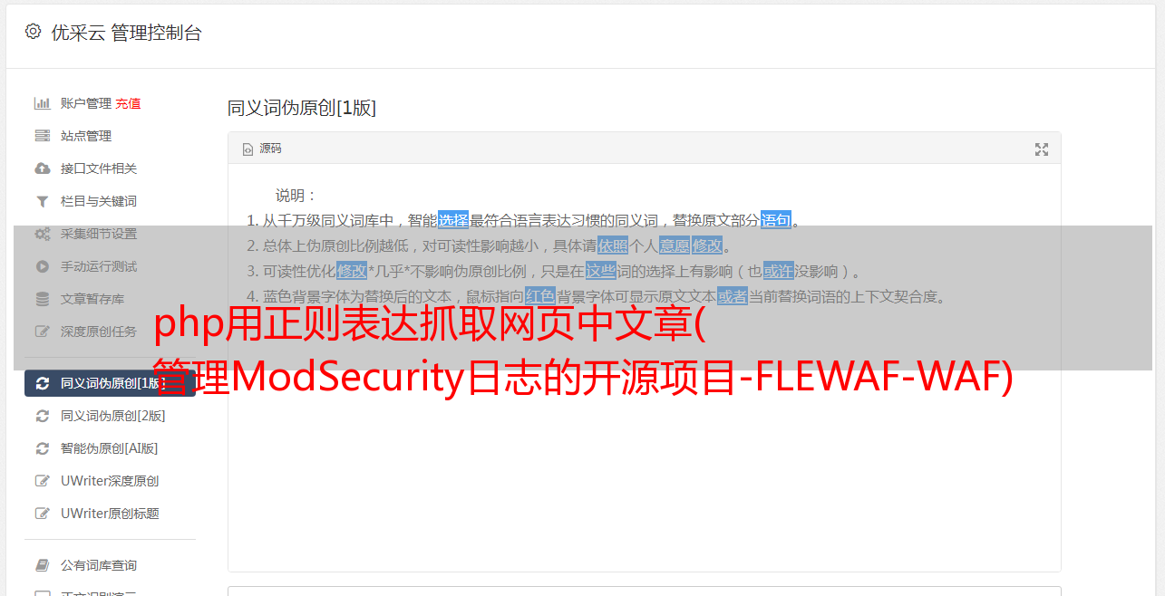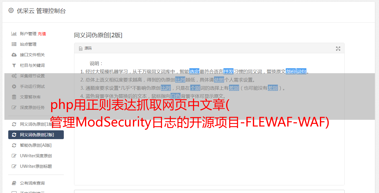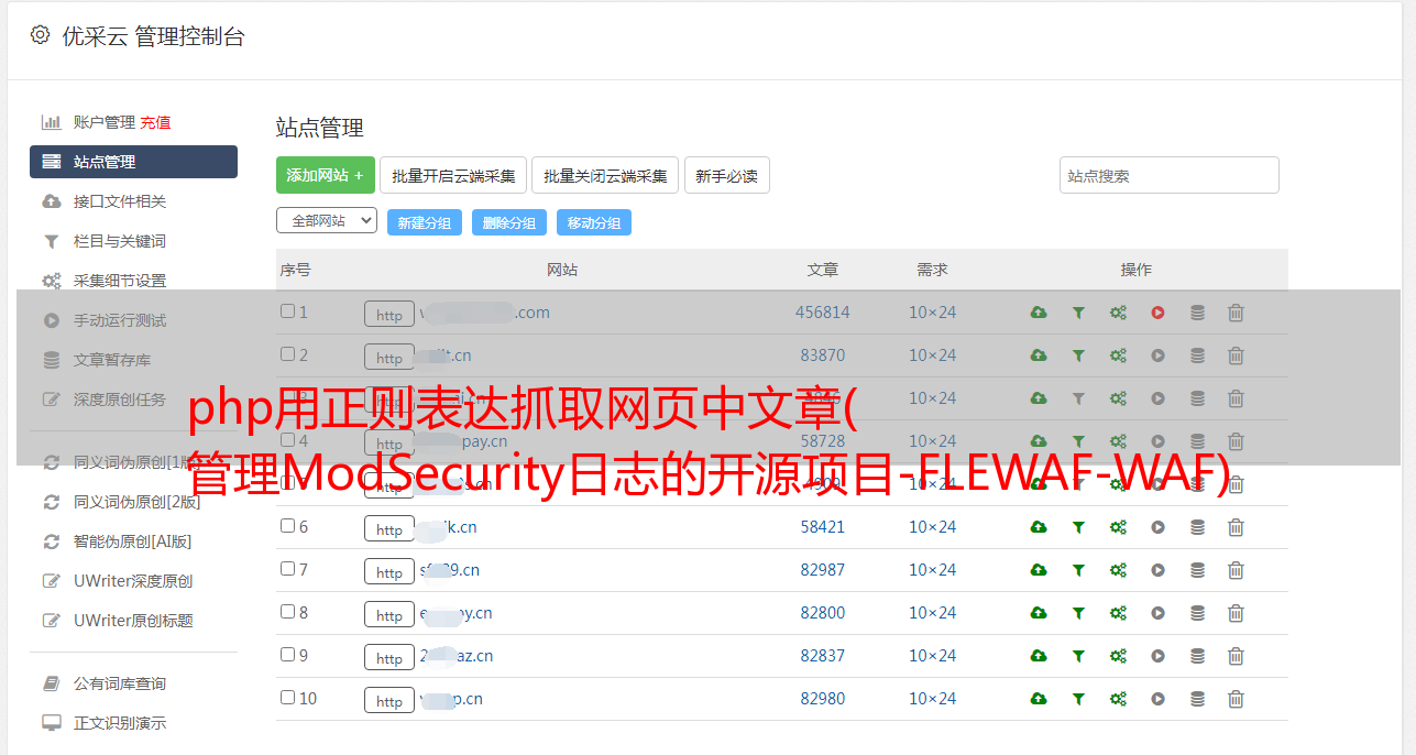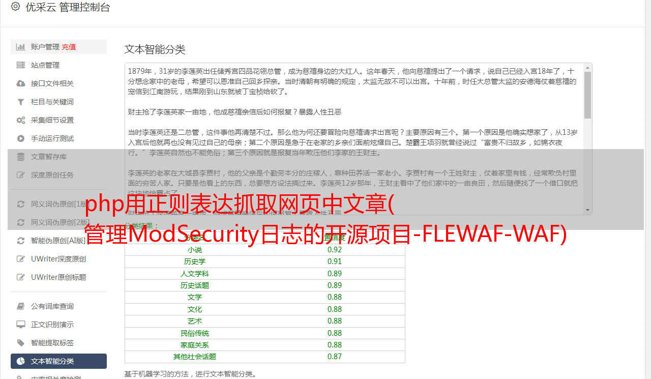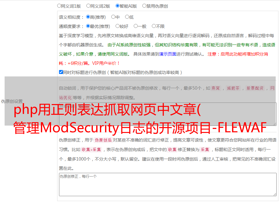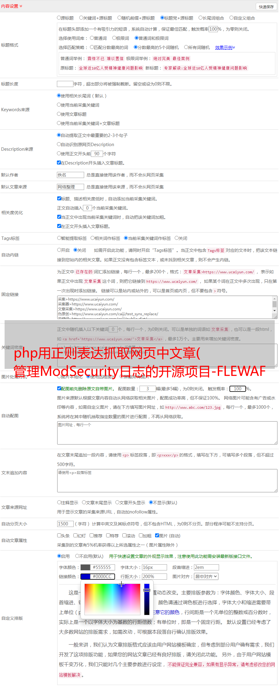 php用正则表达抓取网页中文章( 管理ModSecurity日志的开源项目-FLEWAF-WAF)