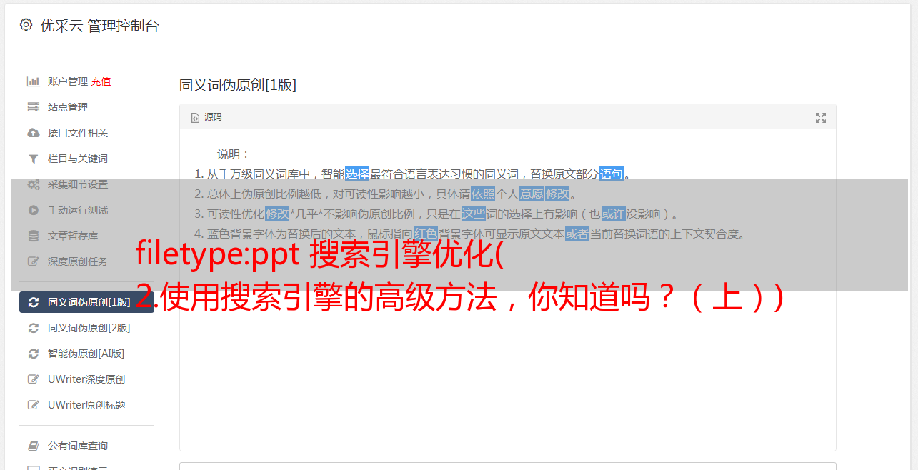 优采云 发布时间: 2022-04-13 23:17filetype:ppt 搜索引擎优化(