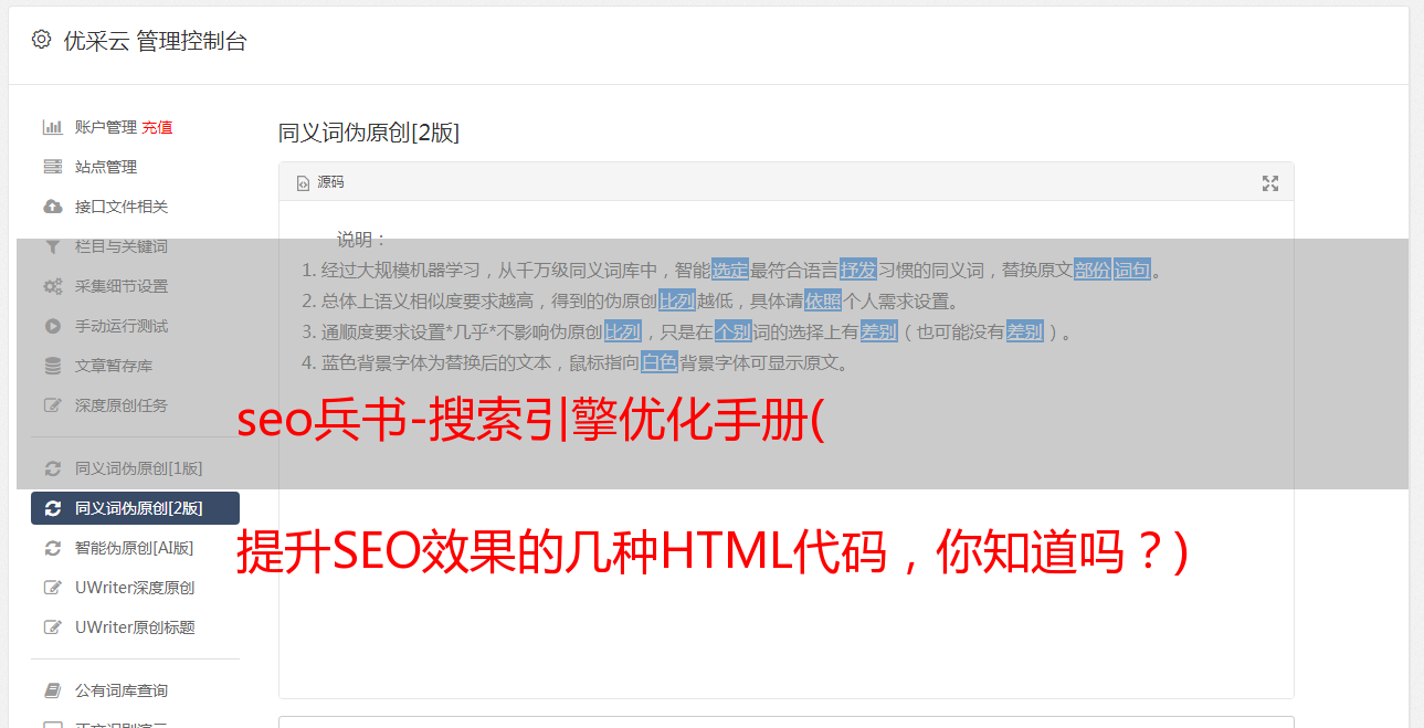 优采云 发布时间: 2022-04-14 01:02seo兵书-搜索引擎优化手册(