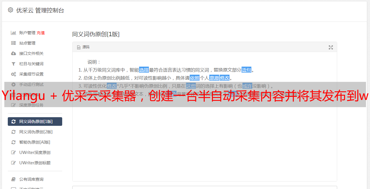 Yilangu + 优采云采集器,创建一台*敏*感*词*采集内容并将其发布到wordpress网站的机器
