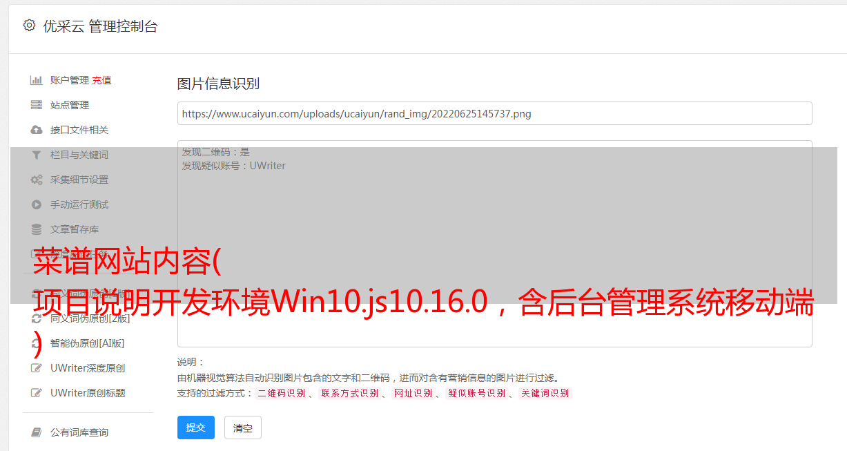 菜谱网站内容( 项目说明开发环境Win10.js10.16.0,含后台管理系统移动端 )