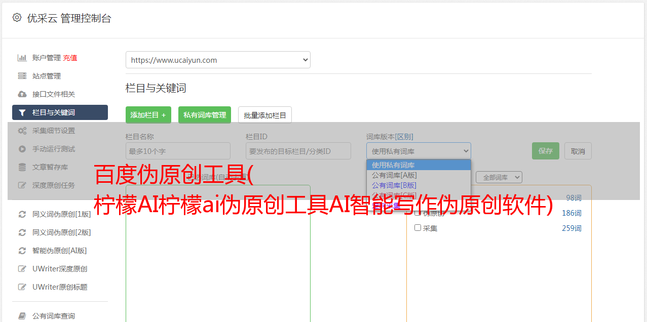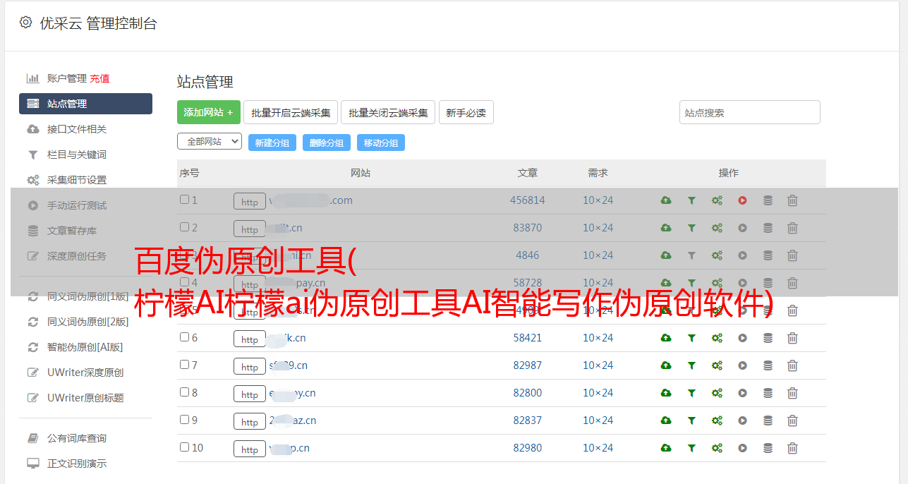 通过全网数据挖掘和机器学习内容分析,提供海量内容处理词库,不是简单的AI伪原创,为您提供更多创意灵感,更快更好,提高效率和智能写作平台。