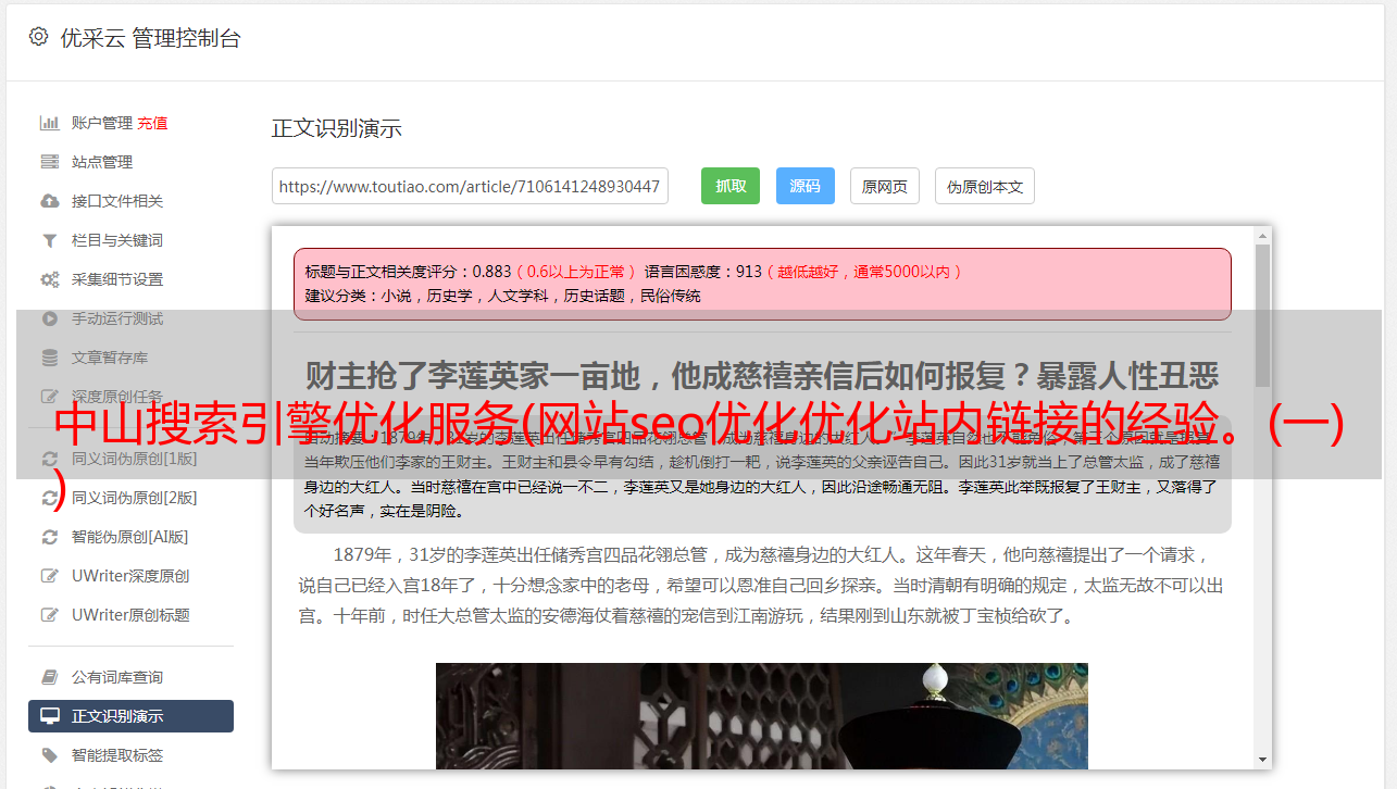 优采云 发布时间: 2022-04-14 11:37中山搜索引擎优化服务(网站seo优化优化站内链接的经验。(一)
