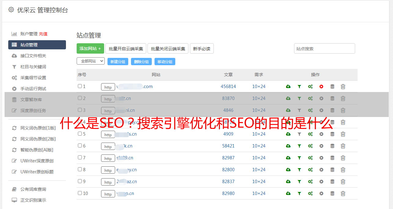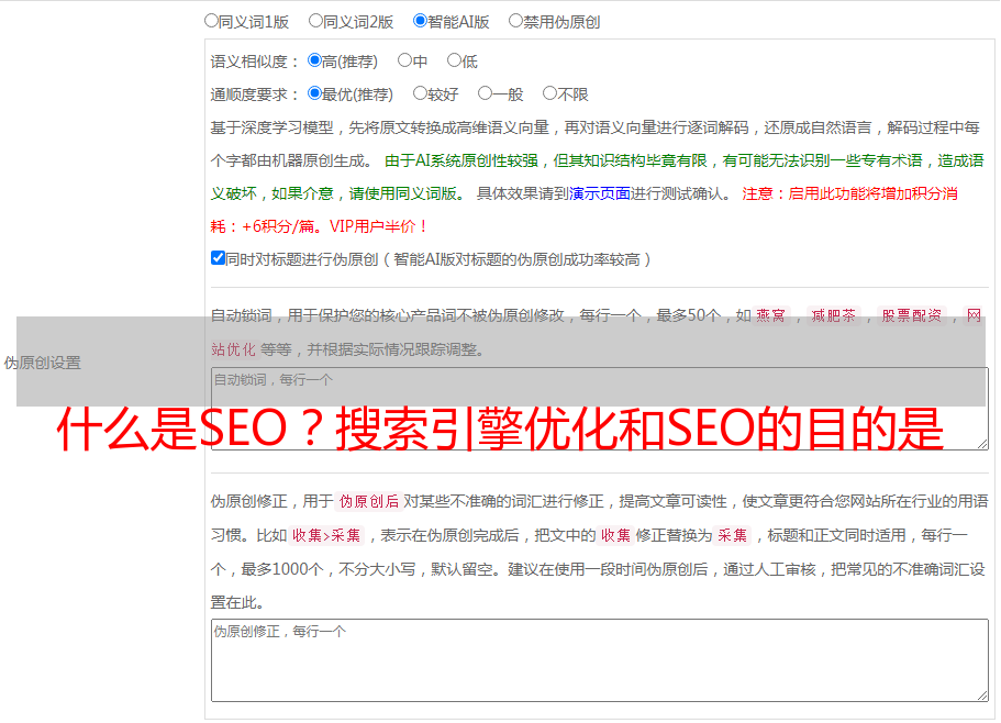 Search Engine Optimization(英语:Search Engine Optimization,缩写为SEO)是一种通过了解搜索引擎的操作规则来调整网站并提高网站在相关搜索引擎中排名的目的的方法(引用来自维基百科)。