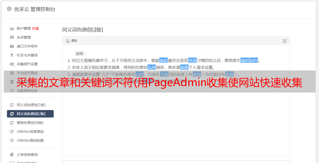 优采云 发布时间: 2022-04-15 02:00采集的文章和关键词不符(用PageAdmin收集使网站快速收集和关键词排名的基础工作)
