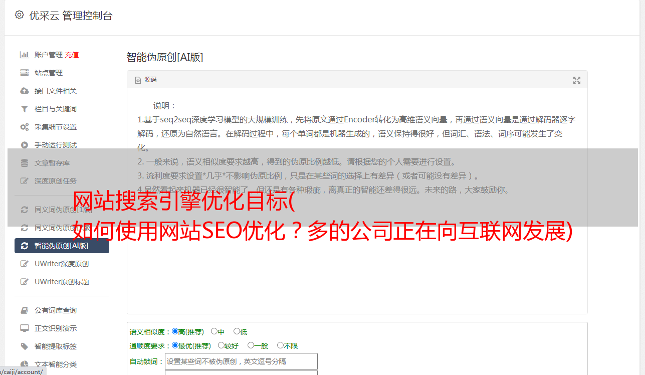 优采云 发布时间: 2022-04-15 06:22网站搜索引擎优化目标(
