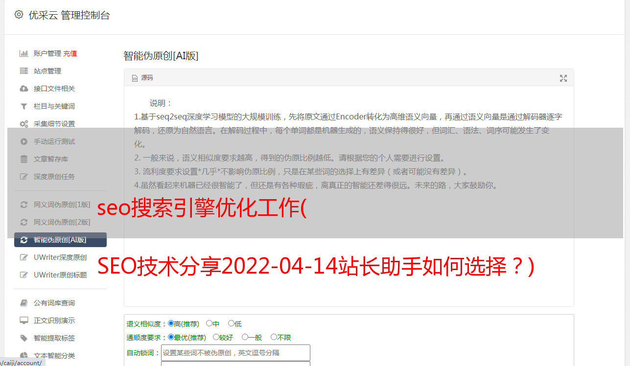 seo搜索引擎优化工作( SEO技术分享2022-04-14站长助手如何选择?)