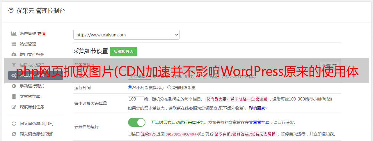 优采云 发布时间: 2022-04-15 09:16php网页抓取图片(CDN加速并不影响WordPress原来的使用体验和操作指南)
