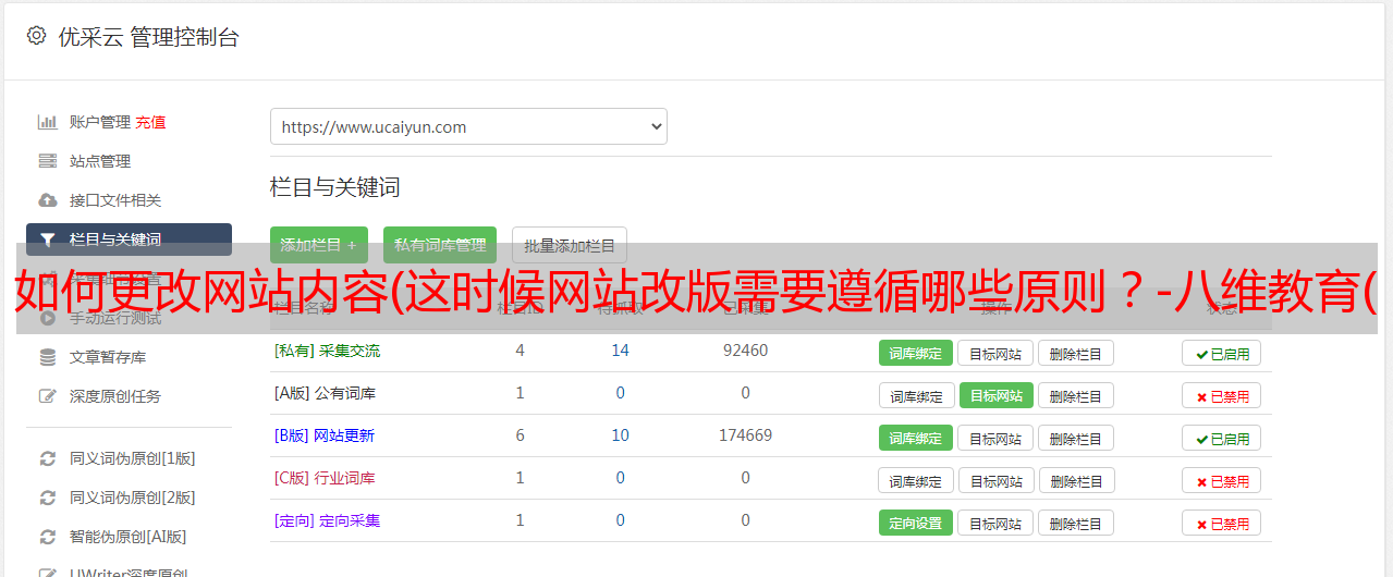 优采云 发布时间: 2022-04-15 12:40如何更改网站内容(这时候网站改版需要遵循哪些原则?-八维教育(图))