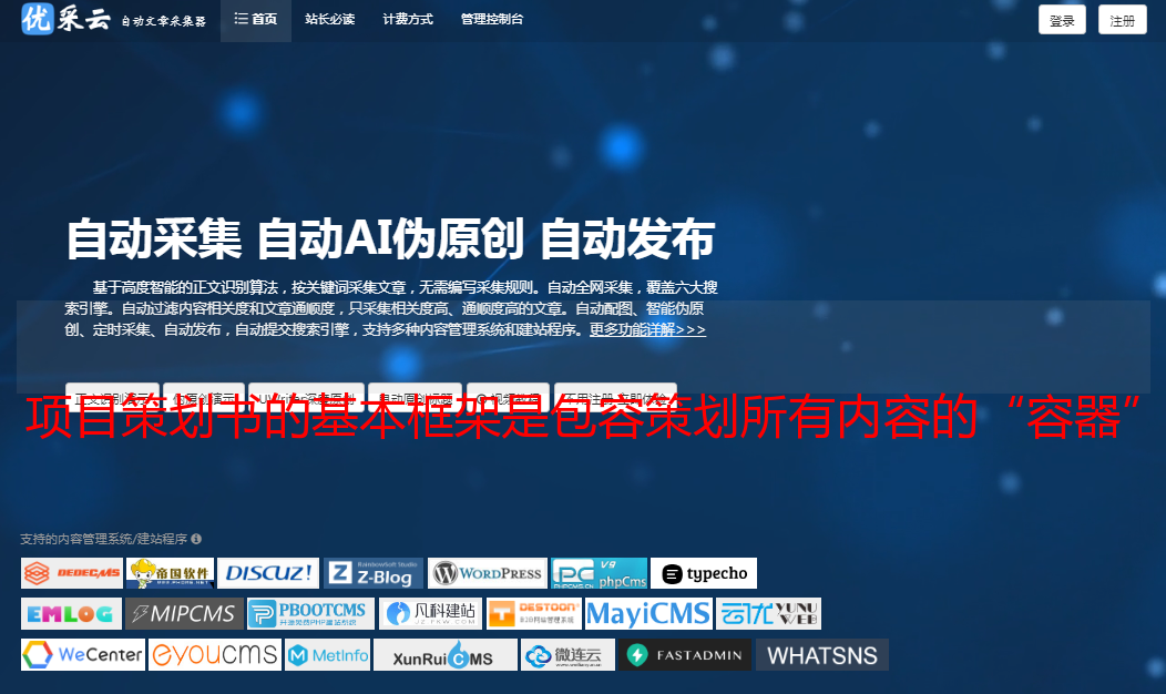 项目策划书的基本框架是包容策划所有内容的“容器”