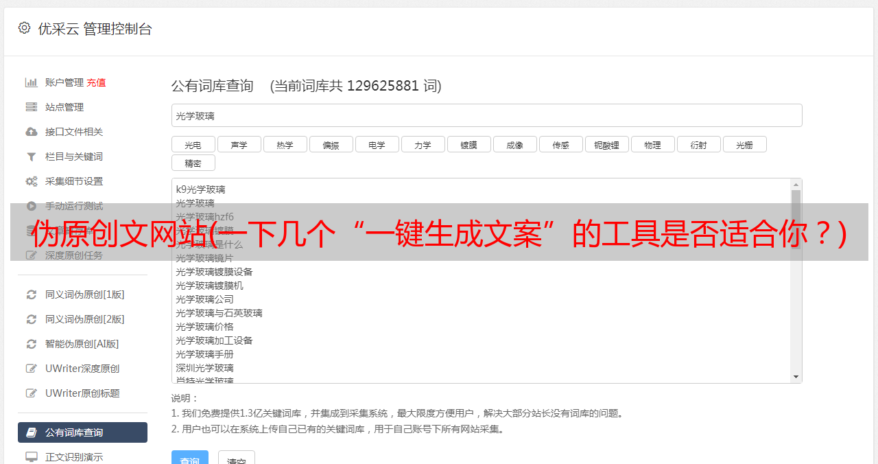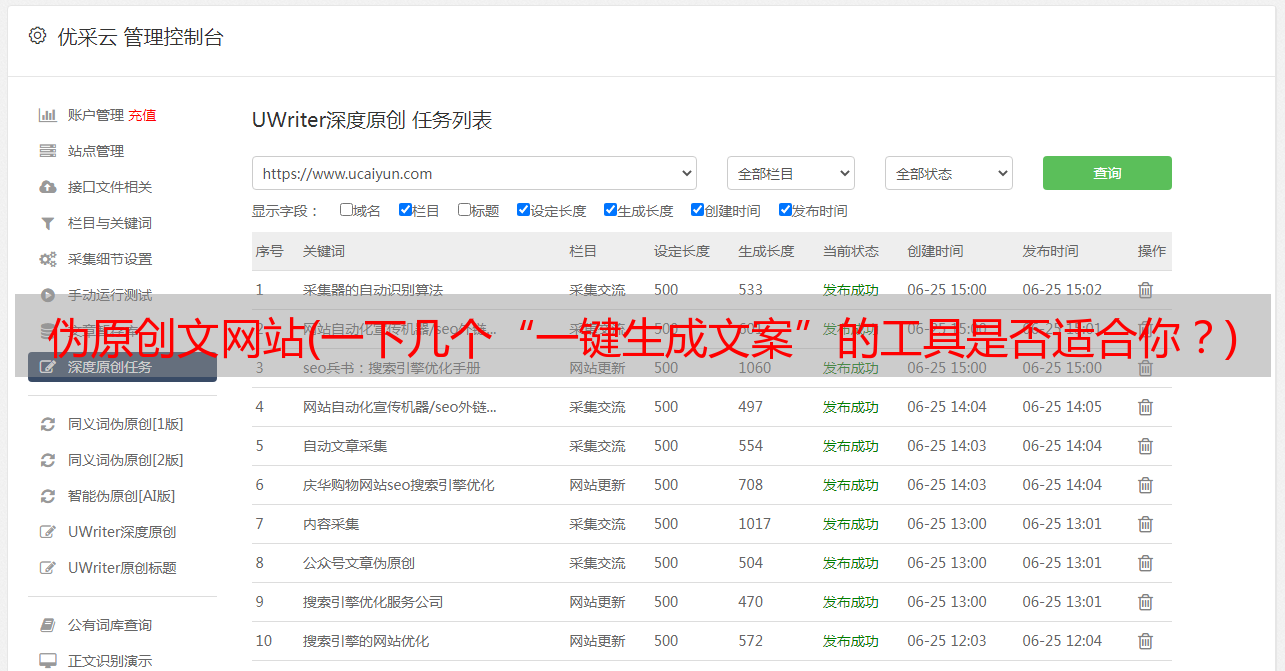 优采云 发布时间: 2022-04-15 15:08伪原创文网站(一下几个“一键生成文案”的工具是否适合你?)