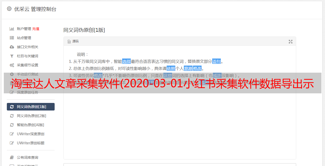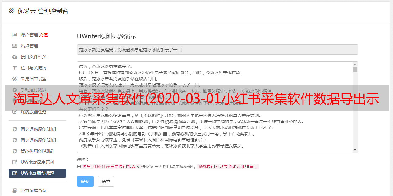 优采云 发布时间: 2022-04-16 03:08淘宝达人文章采集软件(2020-03-01小红书采集软件数据导出示例软件功能)