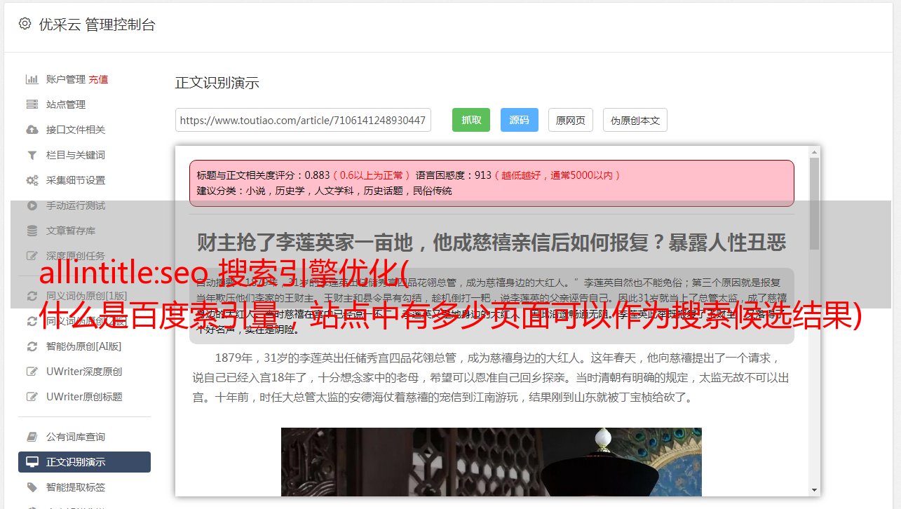 allintitle:seo 搜索引擎优化( 什么是百度索引量,站点中有多少页面可以作为搜索候选结果)